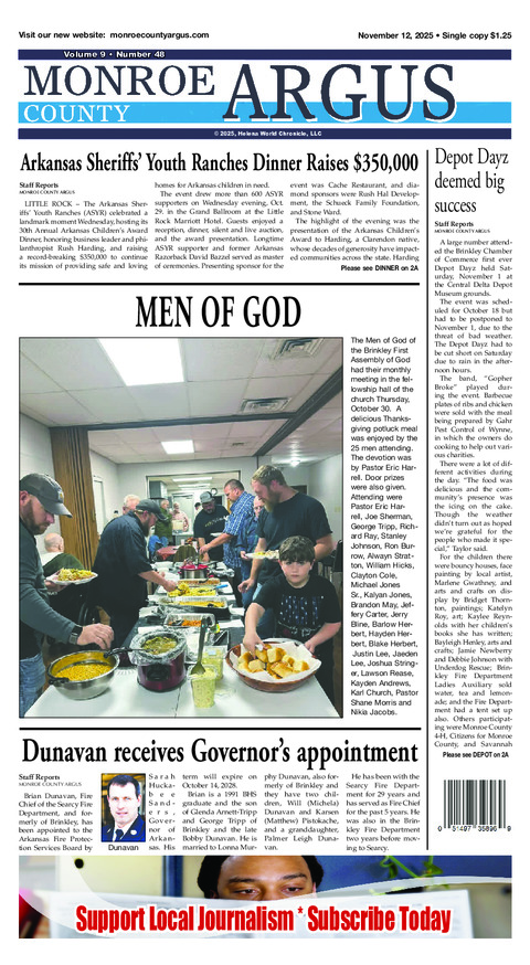 The Men of God of the Brinkley First Assembly of God had their monthly meeting in the fellowship...